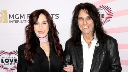 Alice Cooper and Sheryl Goddard met when the trained ballerina landed a role as a dancer on his 1975 tour. They married the following year. Decades later, the couple (pictured during a curtain call in 2025) is still performing together. In 2016, Cooper told marriage coaches The Freemans about something people often say to him: "'[W]hen you go on the road, it must be hard leaving home,' and I go, 'I bring home with me.' Because really a house is a house; a home is who you're with in the house. ... when we go on the road, it's really the perfect sort of storm at this point because I know that Sheryl loves performing more than anything. She was built to be on stage."